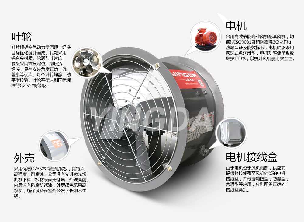 ——防爆型:電機為隔爆型、葉片為鋁合金,適用于易燃、易爆氣體的環境中,防爆等級為EXdIIBT4、EXdIICT4。